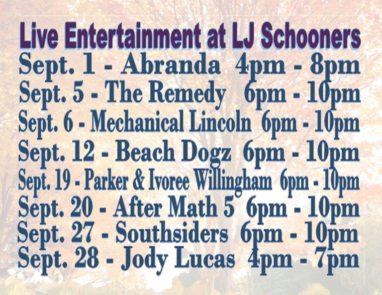 Saturdays, 5pm – 9pm Join us for STEAK NIGHT SATURDAYS at LJ Schooners Dockside Restaurant & Oyster Bar. Chef will have his best steaks!!!Every Saturday,