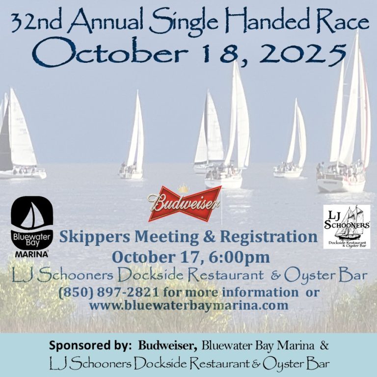 Saturday, October 18, 2025 Time TBD Saturday, October 18, 2025 will be the 32nd Annual Single Handed Race! Registration and Skippers Meeting will be held