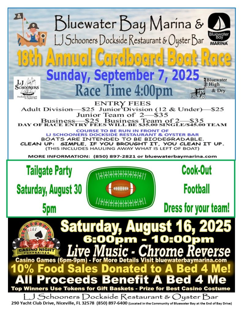 When: Sunday, October 19, 2025 Time: 4:00pm LJ Schooners Dockside Restaurant & Oyster Bar is hosting its 6th Annual Mullet Toss on Sunday, October 19,