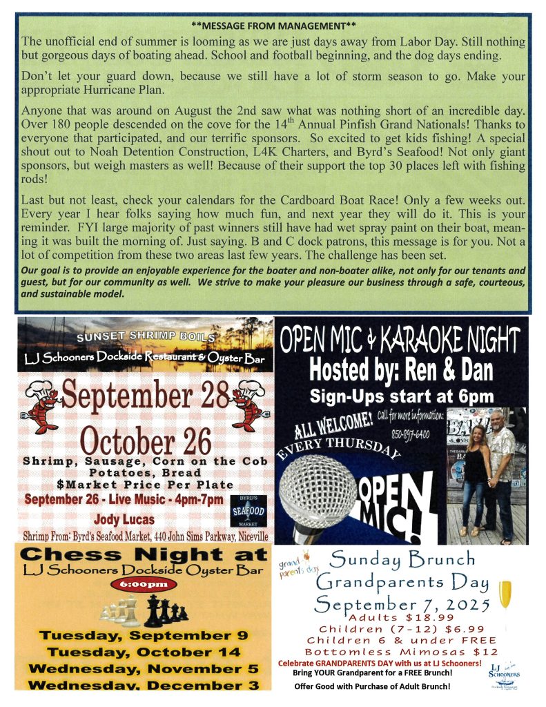 When: Sunday, October 19, 2025 Time: 4:00pm LJ Schooners Dockside Restaurant & Oyster Bar is hosting its 6th Annual Mullet Toss on Sunday, October 19,