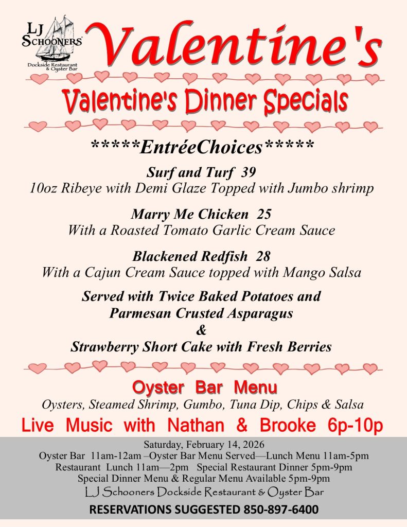 Chef has a special menu for Valentines Dinner and also our regular menu!