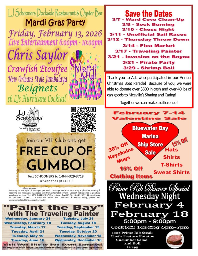 Saturday, March 14, 2026 10:00am – 2:00pm Join us Bluewater Bay Marina for our semi-annual Nautical Flea Market / Flea Market where you will find