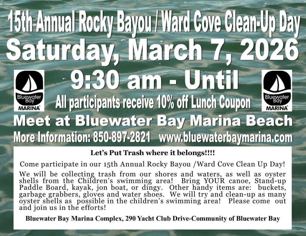 Come participate in our 15th Annual Rocky Bayou /Ward Cove Clean Up Day!
